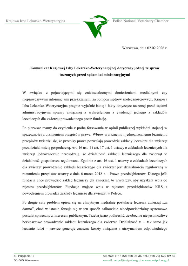 uruchomionego w maju ubiegłego roku, z inicjatywy Krajowej Izby Lekarsko-Weterynaryjnej,