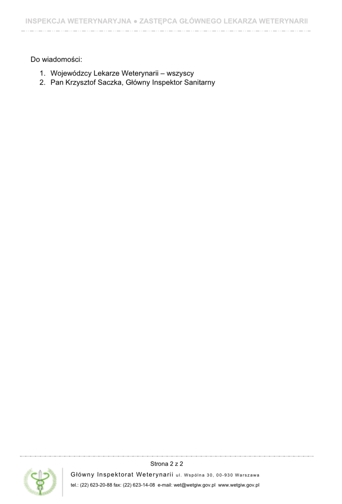 Pismo Głównego Lekarza Weterynarii dot. A/H5N1
