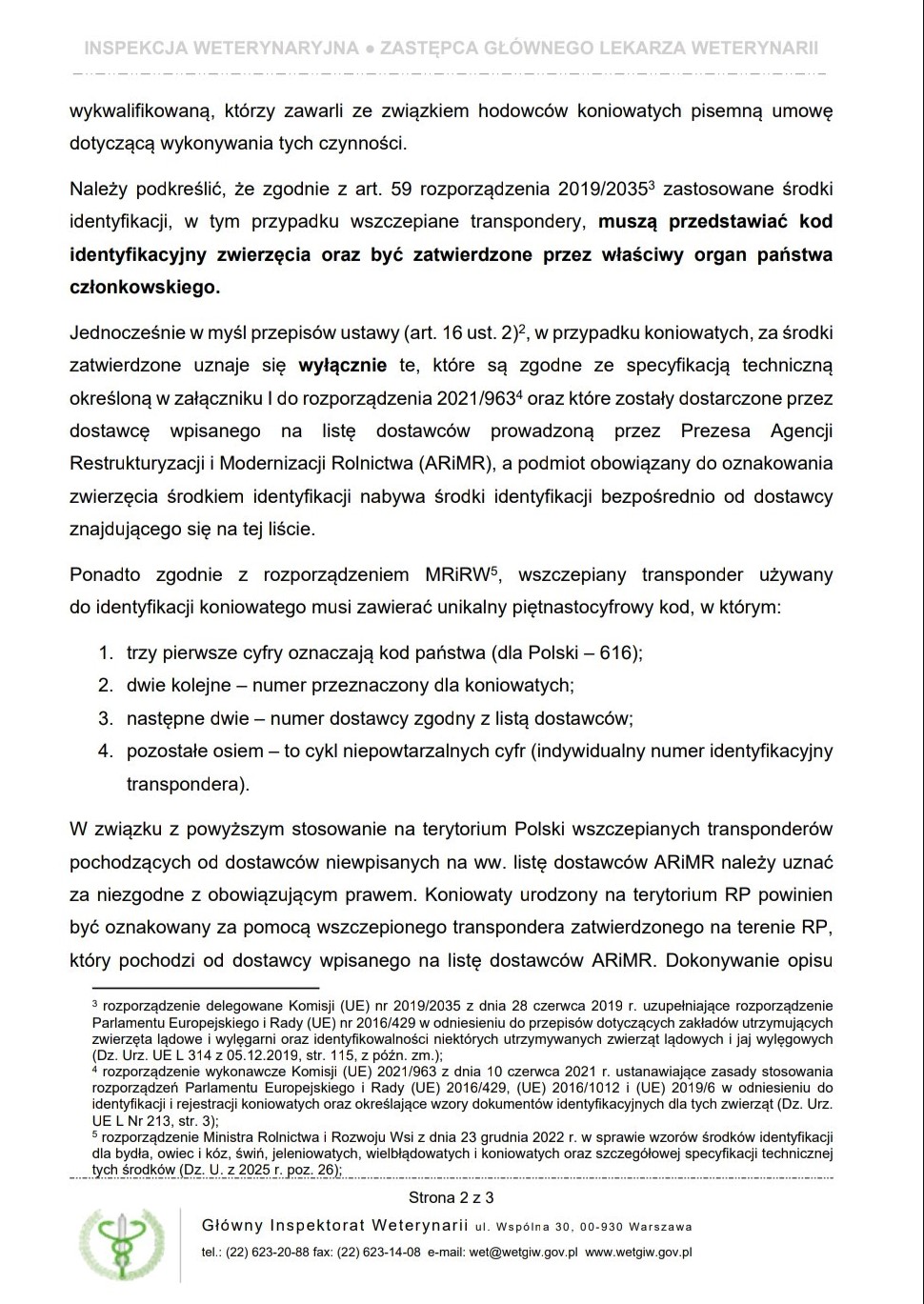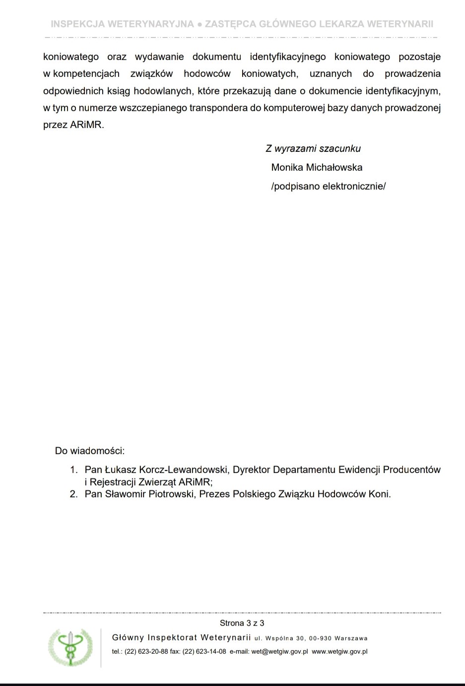 Pismo GLW w sprawie identyfikacji koniowatych przez związki hodowców koni mające siedzibę poza granicami Rzeczypospolitej