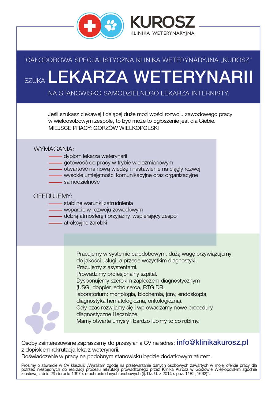 Kurosz Klinika Weterynaryjna w Gorzowie Wielkopolskim poszukuje samodzielnego lekarza weterynarii do pracy